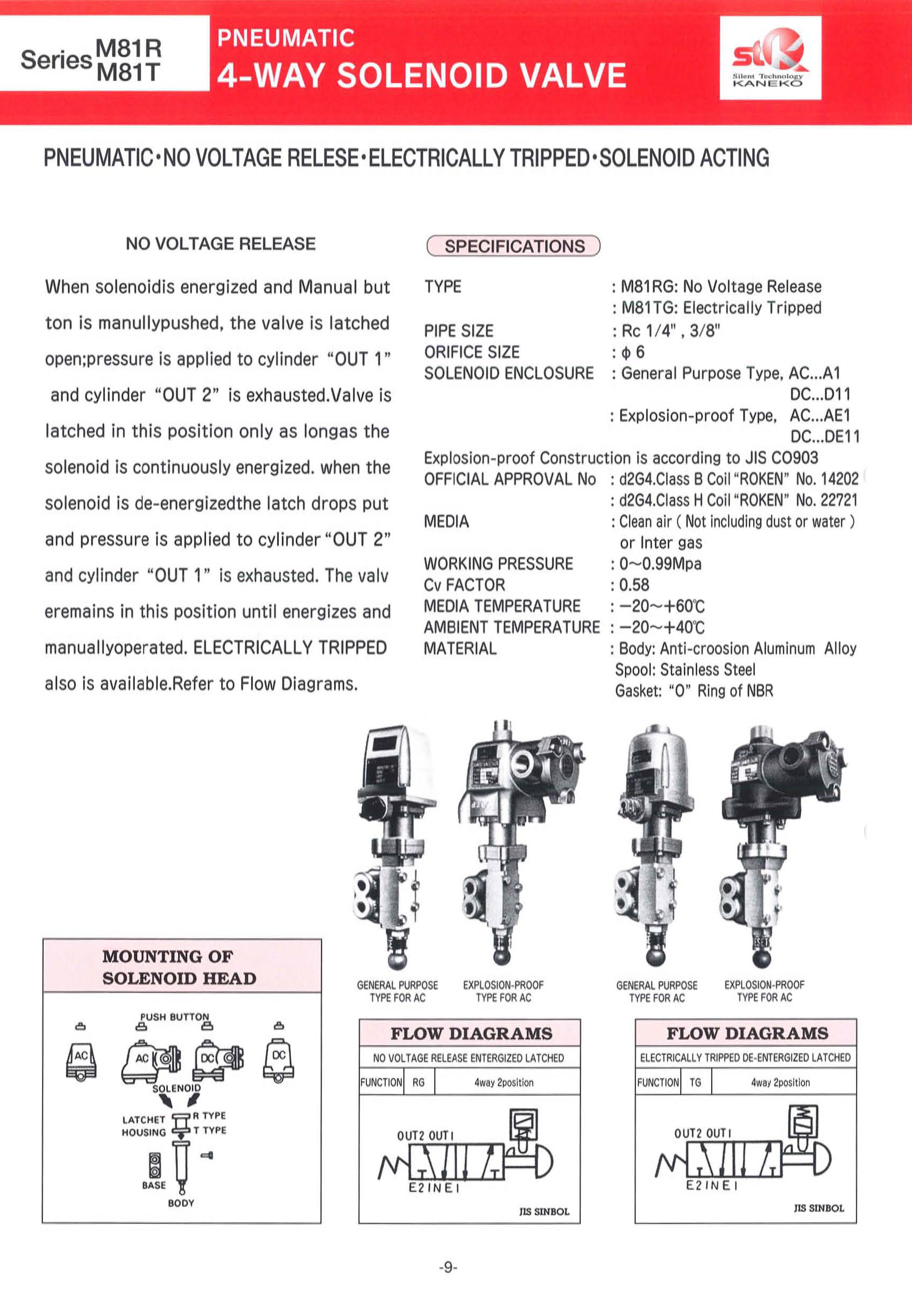 ![]() | ・유체 : CLEAN AIR ・유체 온도 : -20℃~60℃까지 ・주변 온도 : -20℃~60℃까지 ・전기 정격(DUTY CYCLE) : 연속(100% CONTINUOSLY RATED) ・허용 전압 변동률 : +10%,-15% ・작동 압력 : 0 ~ 0.99MPa ・Cv값 : 0.58 ・전류값 : 아래 표 |